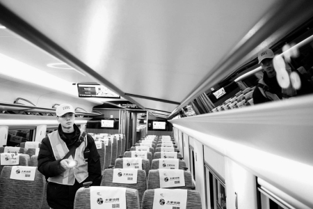 這群由動(dòng)車組機(jī)械師組成的“打溫人”,除隨時(shí)保證動(dòng)車組溫度外,還有一個(gè)重要工作,就是在車廂內(nèi)外進(jìn)行巡視,檢查試驗(yàn)電茶爐、受電弓(一種安裝在動(dòng)車車頂上的電氣設(shè)備,主要用于從接觸網(wǎng)獲取電能,為動(dòng)車提供動(dòng)力)等設(shè)備設(shè)施狀態(tài)。因此,從晚9時(shí)到第二天上午9時(shí),整整12個(gè)小時(shí),“打溫人”始終工作不停歇,時(shí)刻都要處在認(rèn)真排查的緊張工作中。