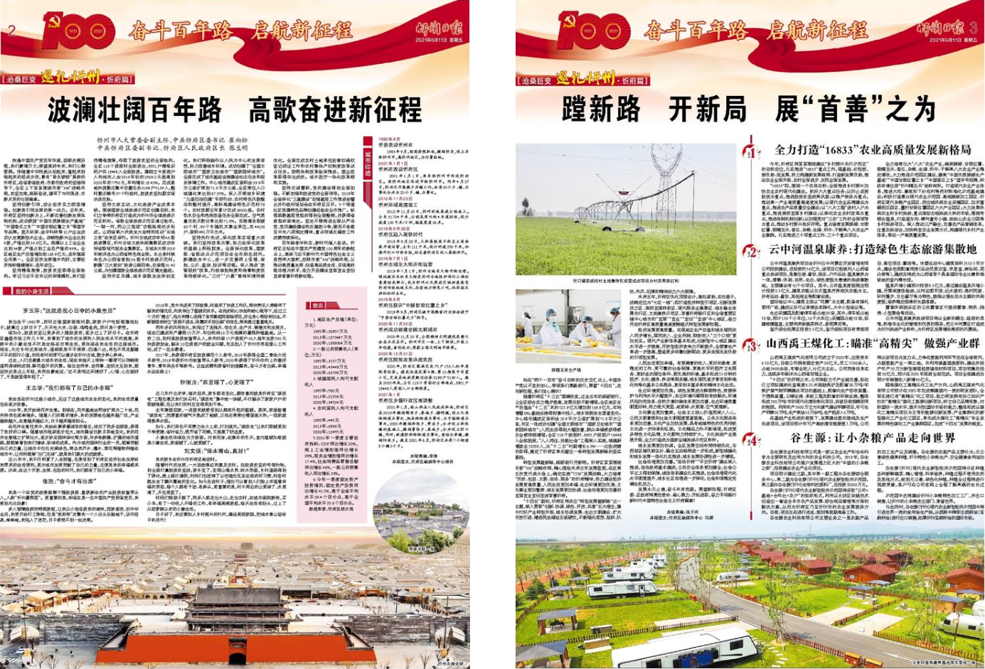 欣逢中國共產(chǎn)黨百年華誕,回顧光輝歷程,我們豪情萬丈;展望美好未來,我們心潮澎湃。伴隨著中華民族從站起來、富起來到強(qiáng)起來的前進(jìn)步伐,素有“晉北鎖鑰”美稱的忻府區(qū),在省委省政府、市委市政府的堅(jiān)強(qiáng)領(lǐng)導(dǎo)下,全區(qū)上下緊緊圍繞市委“336”戰(zhàn)略布局,攻堅(jiān)克難,砥礪奮進(jìn),譜寫了與時(shí)俱進(jìn)、日新月異的壯麗篇章。