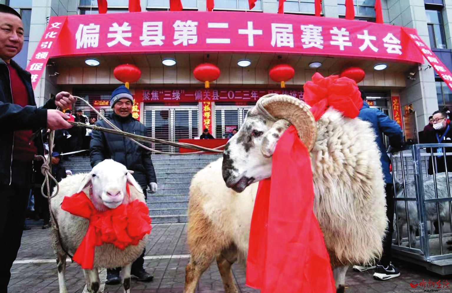 2月22日,偏關(guān)縣賽羊大會(huì)現(xiàn)場(chǎng),獲獎(jiǎng)“明星羊”吸引了眾多鄉(xiāng)親的目光。當(dāng)日,偏關(guān)縣第二十屆賽羊大會(huì)隆重舉行,來(lái)自萬(wàn)家寨鎮(zhèn)、樓溝鄉(xiāng)、老營(yíng)鎮(zhèn)、老牛灣鎮(zhèn)等代表隊(duì)的60多只優(yōu)種羊參加了角逐。經(jīng)評(píng)委嚴(yán)格公正的評(píng)選,樓溝鄉(xiāng)東寨村武新華奪得“優(yōu)良品種引進(jìn)推廣一等獎(jiǎng)”。另外,還評(píng)出“羊產(chǎn)業(yè)開(kāi)發(fā)貢獻(xiàn)獎(jiǎng)”1名、“特色產(chǎn)業(yè)發(fā)展獎(jiǎng)”1名、“組織獎(jiǎng)”3名。養(yǎng)羊是偏關(guān)縣的大產(chǎn)業(yè),賽羊大會(huì)也成為了當(dāng)?shù)氐囊环N傳統(tǒng)文化。賽羊大會(huì)的舉辦對(duì)全縣養(yǎng)殖產(chǎn)業(yè)發(fā)展、農(nóng)民增收致富起到積極的推動(dòng)作用。(本報(bào)通訊員攝)