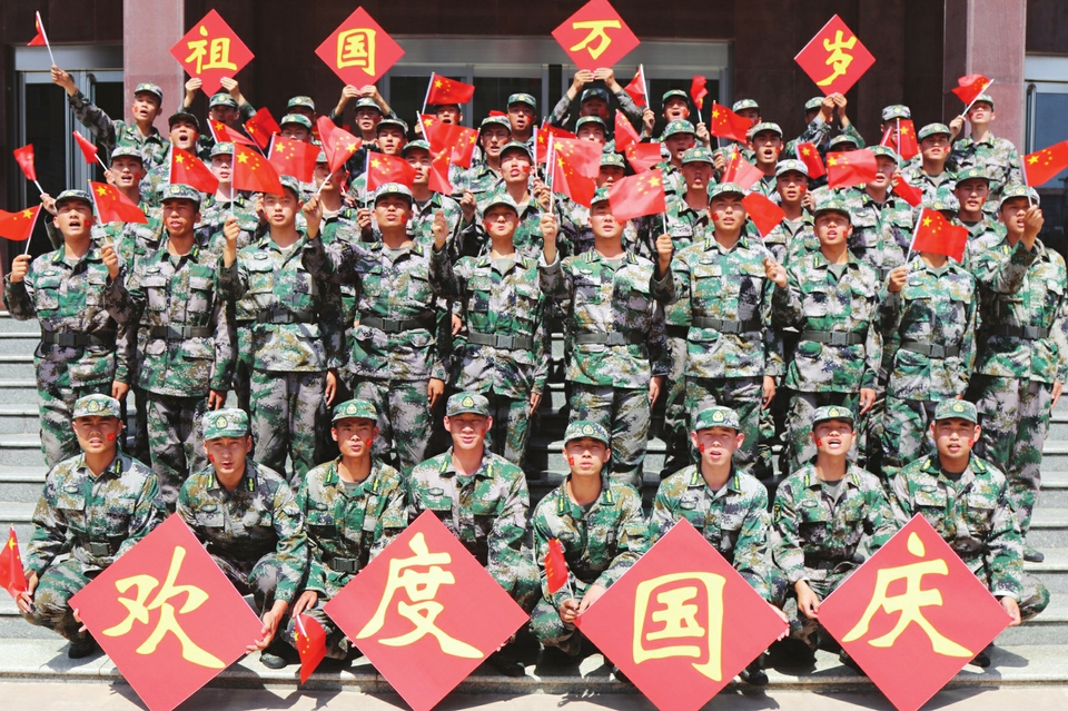 為慶祝中華人民共和國成立72周年,近日,平遙縣人武部開展了“我和國旗合個影,我為祖國送祝?!敝黝}活動,官兵們通過舉行升旗儀式、與國旗合影、合唱愛國歌曲等形式表達對祖國的熱愛,祝福祖國繁榮昌盛。圖為平遙縣人武部官兵合唱歌曲《我和我的祖國》,表達對偉大祖國的無限熱愛和深情祝福。(武兵攝影報道)