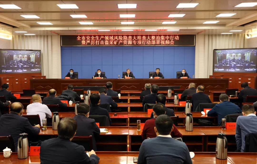 12月21日,全市安全生產(chǎn)領(lǐng)域風(fēng)險(xiǎn)隱患大排查大整治集中行動暨嚴(yán)厲打擊盜采礦產(chǎn)資源專項(xiàng)行動部署會召開,貫徹全省會議精神,安排我市當(dāng)前工作。市委書記朱曉東主持會議并作重要講話,強(qiáng)調(diào)歲末年關(guān)各項(xiàng)工作千頭萬緒,安全生產(chǎn)的嚴(yán)峻性、艱巨性、緊迫性尤為突出,各級各部門務(wù)必高度重視,從嚴(yán)警醒起來,堅(jiān)決杜絕麻痹僥幸心理、松懈情緒,以永遠(yuǎn)在路上的心態(tài),以一切從零開始的作為,堅(jiān)持兩手用力,推進(jìn)兩個行動,全面落實(shí)好省委省政府和市委市政府部署要求,堅(jiān)決守牢安全生產(chǎn)底線。市委副書記、市政府黨組書記李建國,市委常委、常務(wù)副市長趙新年,副市長、市公安局長袁小波,市政府秘書長張艮生出席會議。會議以視頻方式召開,各縣(市、區(qū))設(shè)分會場,兼任縣(市、區(qū))職務(wù)的市領(lǐng)導(dǎo)在分會場出席會議。市政府安委會成員單位和相關(guān)重點(diǎn)企業(yè)負(fù)責(zé)人在市主會場參加會議。