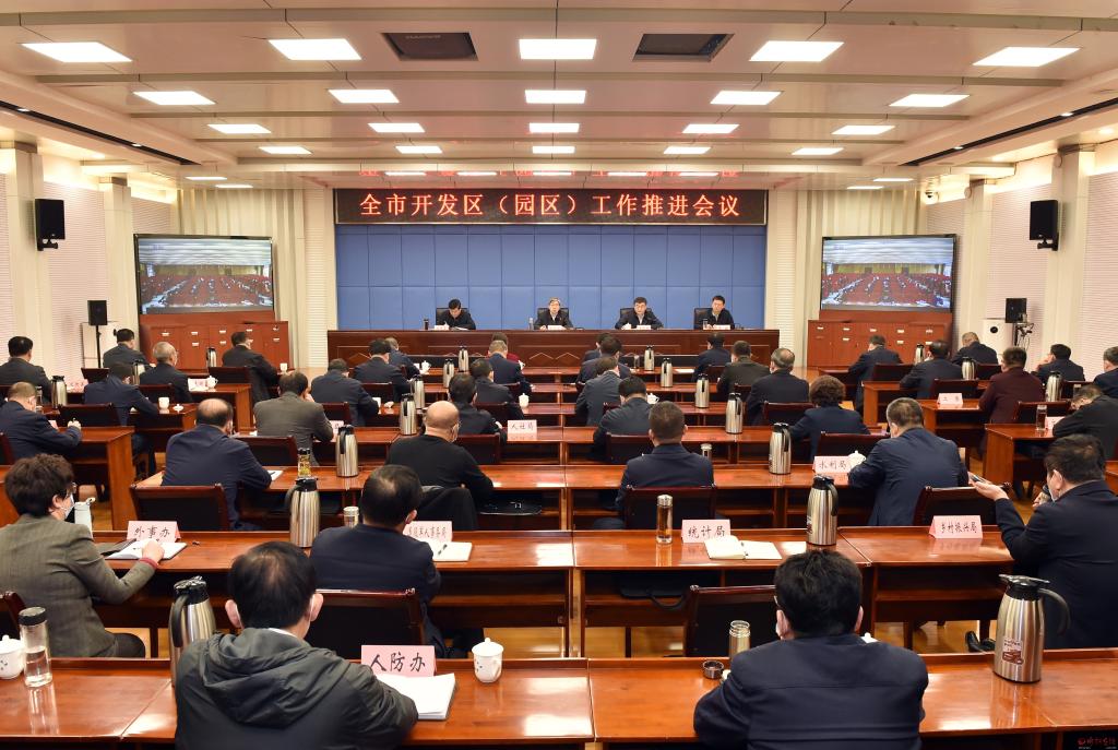 溫建軍總結(jié)全市開發(fā)區(qū)(園區(qū))2021年工作,安排部署2022年重點(diǎn)工作。馮曉磊 攝