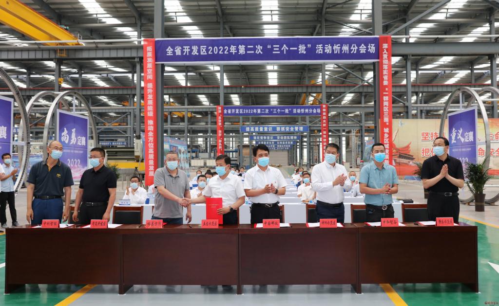 在定襄經(jīng)濟(jì)技術(shù)開發(fā)區(qū)寶航重工有限公司車間,與省主會(huì)場(chǎng)同步,李建國(guó)主持舉行了忻州市“簽約一批”代表項(xiàng)目集中簽約活動(dòng)。忻州經(jīng)濟(jì)開發(fā)區(qū)與山西汽運(yùn)集團(tuán)“汽運(yùn)網(wǎng)絡(luò)貨運(yùn)數(shù)字產(chǎn)業(yè)園項(xiàng)目”、原平經(jīng)濟(jì)技術(shù)開發(fā)區(qū)與山西晉海清潔能源有限公司“500MW/1GWh共享儲(chǔ)能電站項(xiàng)目”、繁峙經(jīng)濟(jì)技術(shù)開發(fā)區(qū)與山西華茂智能新材料有限公司“綜合治理提升工程項(xiàng)目”、定襄經(jīng)濟(jì)技術(shù)開發(fā)區(qū)與德?;饘僦破酚邢薰尽澳昙庸?000噸鋼材項(xiàng)目”、靜樂現(xiàn)代農(nóng)業(yè)產(chǎn)業(yè)示范區(qū)與北京中和智谷循環(huán)經(jīng)濟(jì)科技有限公司“200MW農(nóng)牧光儲(chǔ)一體化項(xiàng)目”、神池現(xiàn)代農(nóng)業(yè)產(chǎn)業(yè)示范區(qū)與中國(guó)郵政集團(tuán)“郵件處理中心項(xiàng)目”、五臺(tái)現(xiàn)代農(nóng)業(yè)產(chǎn)業(yè)示范區(qū)與雄縣方濟(jì)商貿(mào)有限公司“特色豆制品加工項(xiàng)目”、岢嵐經(jīng)濟(jì)技術(shù)開發(fā)區(qū)與中科人工智能科技有限公司“航天科技產(chǎn)業(yè)園項(xiàng)目”等8個(gè)代表項(xiàng)目分兩個(gè)批次進(jìn)行了簽約。