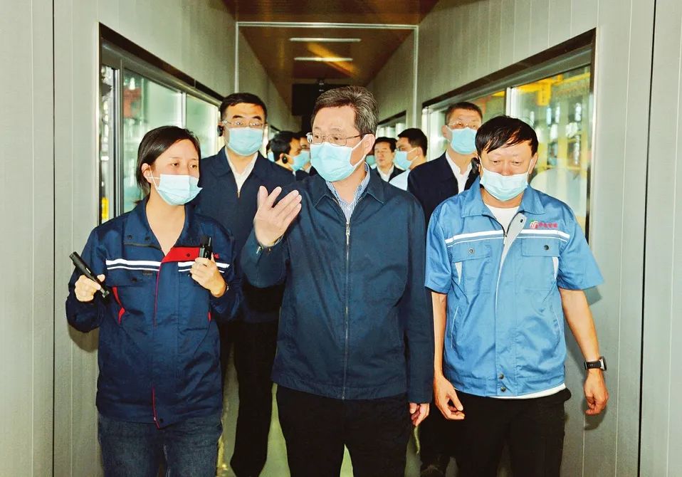 ▲9月6日,省委副書記、省長藍佛安來到位于繁峙縣的山西華茂智能新材料有限公司,調(diào)研年產(chǎn)30萬噸球墨鑄管和13萬噸鑄件項目,認真察看生產(chǎn)設(shè)施及流程,了解產(chǎn)品類型、應用領(lǐng)域等情況。山西日報記者 李兆民 攝