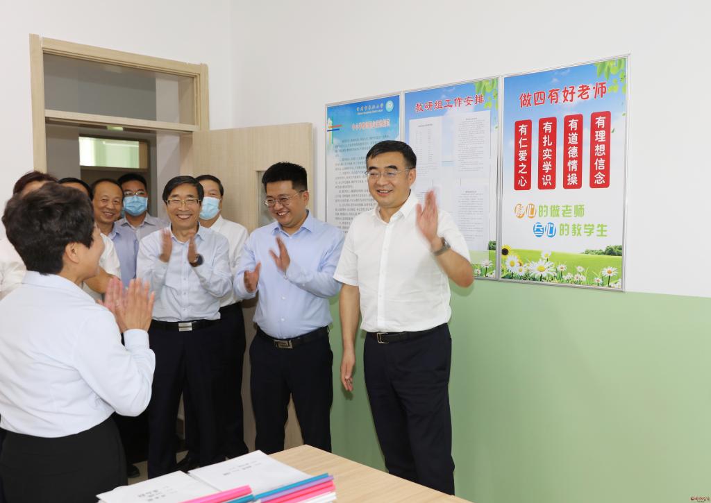 李建國詳細了解各學校的硬件設施和教師隊伍情況,察看學校開設的勞動技能等特色課程,并與優(yōu)秀教師代表和中小學校長、幼兒園園長座談,聽取推進全市教育事業(yè)發(fā)展的意見建議。