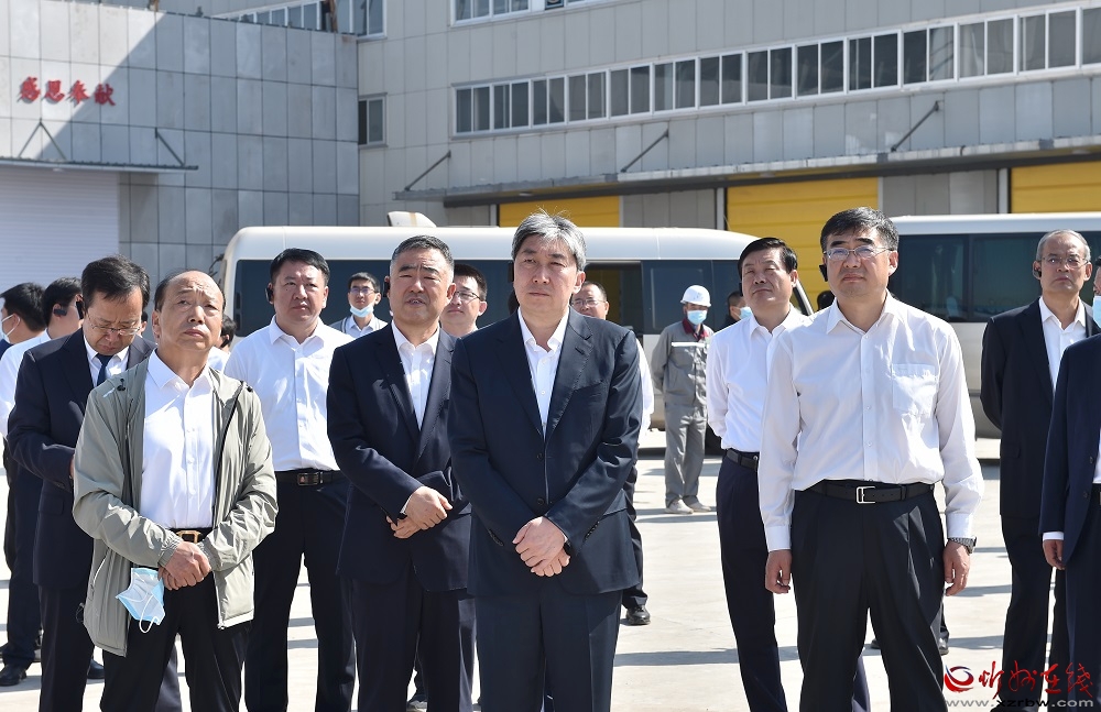 在山西宏厚建筑科技有限公司觀摩檢查建筑固廢回收利用制水穩(wěn)層拌合料及混凝土加工生產(chǎn)線項目、鋼結(jié)構(gòu)裝配式建筑生產(chǎn)線項目建設情況。馮曉磊 攝