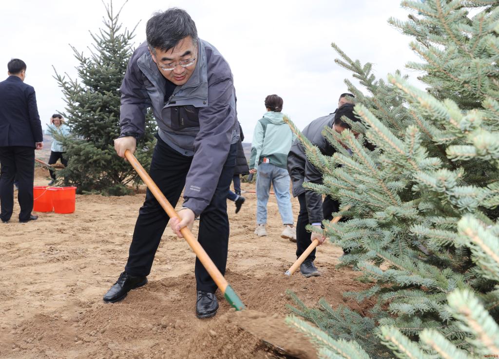 朱曉東指出,國土綠化,功在當代、利在千秋。開展大規(guī)模國土綠化行動,是貫徹落實習(xí)近平生態(tài)文明思想的重要實踐,是忻州牢記領(lǐng)袖囑托、保護黃河安瀾、筑牢環(huán)京津冀生態(tài)屏障的重要抓手。全市上下要把抓好生態(tài)文明建設(shè)作為堅決捍衛(wèi)“兩個確立”的具體行動,增強“四個意識”、堅定“四個自信”、做到“兩個維護”,站在筑牢國家生態(tài)安全屏障的戰(zhàn)略高度,站在實現(xiàn)忻州高質(zhì)量永續(xù)發(fā)展的高度,深刻認識開展國土綠化行動和全民義務(wù)植樹的極端重要性,堅決落實好市委、市政府的部署安排。朱曉東說,忻州作為黃河入晉第一市,作為汾河、桑干河、滹沱河“三河之源”,作為華北平原西部生態(tài)屏障,扛牢生態(tài)建設(shè)使命,必須謀在先干得實。要牢固樹立生態(tài)文明觀,準確把握生態(tài)與經(jīng)濟、生態(tài)與社會、全局與局部、當前與長遠的關(guān)系,嚴格落實忻州“兩屏三區(qū)三帶”建設(shè)規(guī)劃,統(tǒng)籌山水林田湖草沙綜合治理,精準謀劃、精細布局,堅持造管并重、造改并行、造封結(jié)合,確保在遵循規(guī)律的基礎(chǔ)上因地制宜,不斷擴大林地面積,不斷提高森林質(zhì)量,持續(xù)提升生態(tài)系統(tǒng)穩(wěn)定性,努力探索出務(wù)實管用的忻州綠化路徑。要圍繞國家重點區(qū)域重大生態(tài)修復(fù)和保護工程“雙重”項目、省級黃河流域生態(tài)防護林屏障、環(huán)京津冀生態(tài)安全屏障等造林綠化重點工程,積極爭取更多項目落地忻州。偏關(guān)、河曲、保德、五寨4縣要統(tǒng)籌造林綠化和荒漠化治理,科學(xué)精準推進人造林、退化林修復(fù)、100個重點村莊高標準綠化美化等項目實施,著力打造集晉西北整流域綜合治理、片帶狀生態(tài)防護、節(jié)點景觀綠化為一體的荒漠化典型示范工程,為黃河流域生態(tài)保護修復(fù)提供可復(fù)制可借鑒的經(jīng)驗。要深化全民履“植”,繼續(xù)深化全民植樹成效,創(chuàng)新義務(wù)植樹形式,提高公民義務(wù)植樹參與率,讓愛綠植綠護綠成為群眾的自覺追求,讓綠水青山成為忻州的“幸??可健?。要完善管護體系,把營造林數(shù)量、質(zhì)量“雙增”的目標擺在首位,創(chuàng)新管護方式,全面落實林長制,做好森林防火工作,加大對亂砍濫伐、非法開墾等破壞造林綠化成果違法行為的處置力度,真正管在實處、管在關(guān)鍵。朱曉東強調(diào),做好國土綠化工作關(guān)鍵在落實。市發(fā)改、財政、自然資源(林業(yè))、住建、交通運輸、農(nóng)業(yè)、水利等主要職能部門,要各司其職、密切配合,協(xié)同推進城市、礦山、道路、村鎮(zhèn)、水域、山地等國土綠化工作。各縣(市、區(qū))一把手要親自抓、重點抓、具體抓,樹立正確的政績觀,主政一方、造福一方,為當?shù)刈訉O后代建好水庫、錢庫、糧庫、碳庫。要開展身邊增綠、城鄉(xiāng)增景行動,既增大“綠”,也抓小“綠”、微“綠”,既造底色,也造景色、美色,真正把國土綠化同高質(zhì)量發(fā)展大局結(jié)合起來,為美麗忻州、品質(zhì)忻州、幸福忻州貢獻更多力量。
