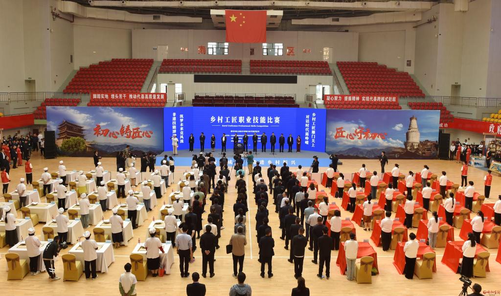 雁門聲聲鑄就工匠精神,沱水悠悠傳承非遺技能。5月14日,鄉(xiāng)村工匠職業(yè)技能比賽暨鄉(xiāng)村工匠遴選分類項目(山西)座談會在代縣舉行。國家鄉(xiāng)村振興局考評司二級巡視員周建文出席并講話,市委書記朱曉東出席并致辭,省鄉(xiāng)村振興局局長張玉宏,市委副書記、市長李建國出席,中國鄉(xiāng)村發(fā)展基金會副秘書長丁亞冬出席并講話,省鄉(xiāng)村振興局副局長張建成、二級巡視員趙小英,市委常委、代縣縣委書記崔崢嶺,副市長李碩,市政府秘書長張艮生,陜西、黑龍江、吉林、遼寧、河北、山東等六省鄉(xiāng)村振興局分管負責同志及有關(guān)業(yè)務(wù)處室負責同志,山西11個市鄉(xiāng)村振興局負責同志參加。