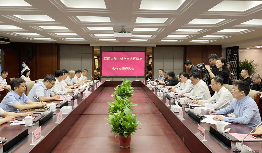 與江南大學進行座談。