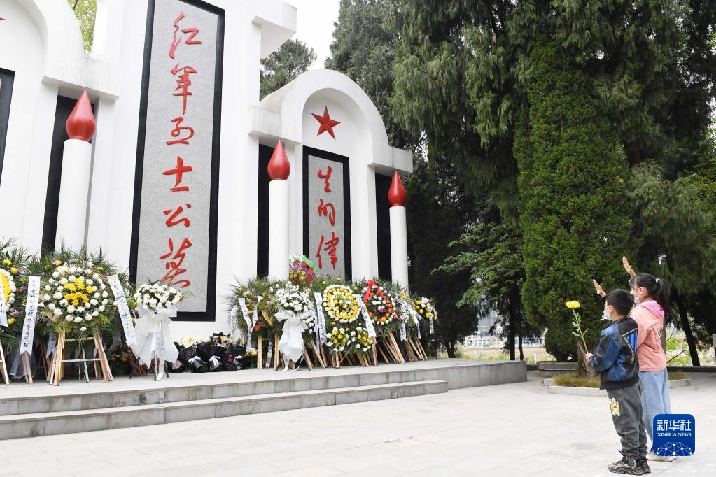 4月4日,在貴州省赤水市紅軍烈士陵園,赤水一中師生祭奠紅軍烈士。
