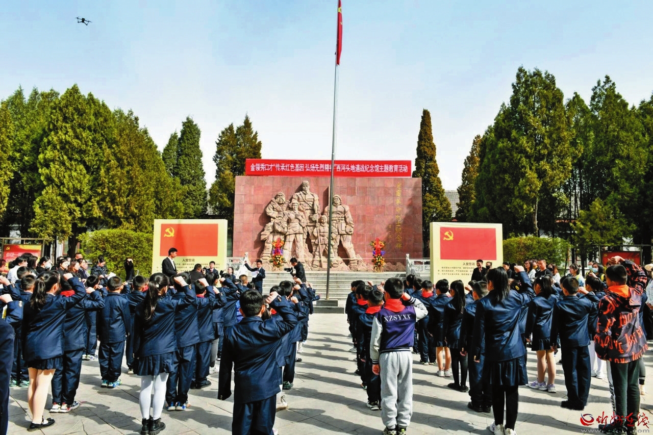 在西河頭地道戰(zhàn)紀(jì)念館英雄紀(jì)念碑前,大家聆聽革命先烈故事,向烈士紀(jì)念碑敬獻(xiàn)花圈,寄托對(duì)革命先烈的無(wú)限哀思和敬仰之情。 本報(bào)通訊員攝