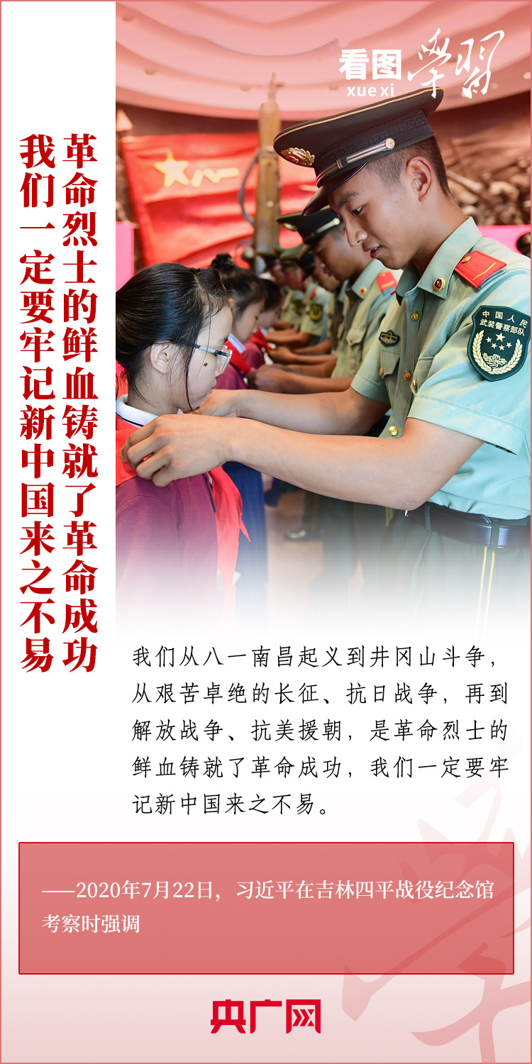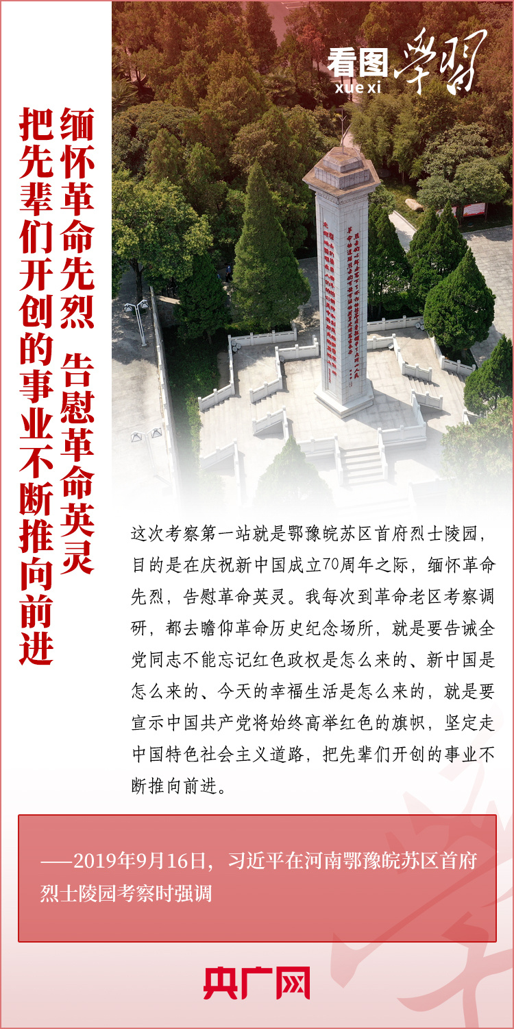 緬懷革命前輩,告慰先烈英靈。黨的十八大以來,習近平總書記多次在重大活動、赴地方調研時,或深情追憶革命前輩、英雄烈士,或向革命紀念場館禮敬鮮花、關心看望英烈親屬??倳浢銊畲蠹乙^承革命先烈遺志,把他們流血犧牲打下的紅色江山守護好、建設好,以實現(xiàn)中華民族偉大復興來告慰革命前輩和先烈。