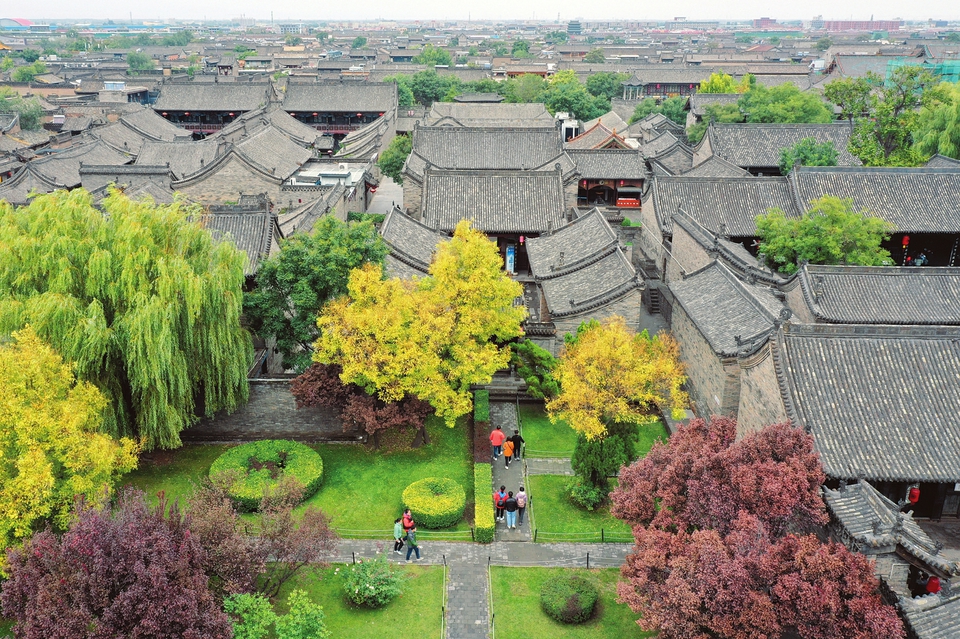 10月4日,游人在世界文化遺產平遙古城游覽。當日是我國傳統(tǒng)節(jié)日重陽節(jié),又逢國慶長假,人們來到平遙古城,登高遠眺,秋游觀景,歡度佳節(jié)。