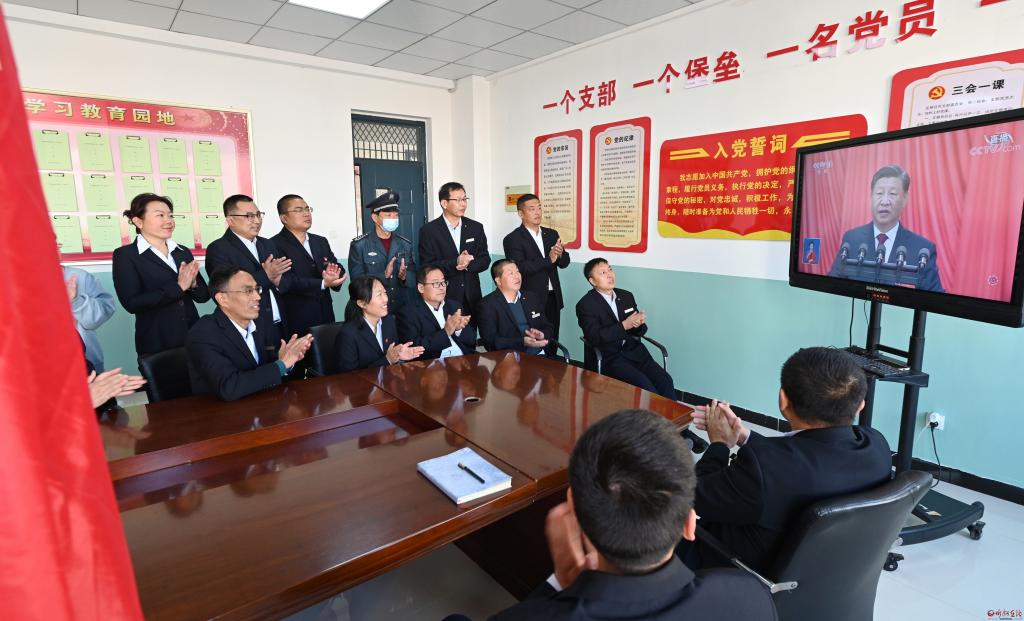 山西寧武大運華盛能源集團有限公司及各煤業(yè)公司、二級子公司組織觀看了開幕會盛況直播。與會人員一邊聆聽報告,一邊做著筆記?!傲暯娇倳浰鞯墓ぷ鲌蟾婕冉o出了過去五年的亮眼‘成績單’,也科學謀劃了未來5年乃至更長時期黨和國家事業(yè)發(fā)展的目標任務和大政方針?!奔瘓F公司媒體中心副主任劉強說“,我將認真學習領會貫徹黨的二十大精神,全面提高理論水平、專業(yè)能力和實踐本領,立足本職崗位,做好本職工作,以新作為交出新答卷?!?/p>