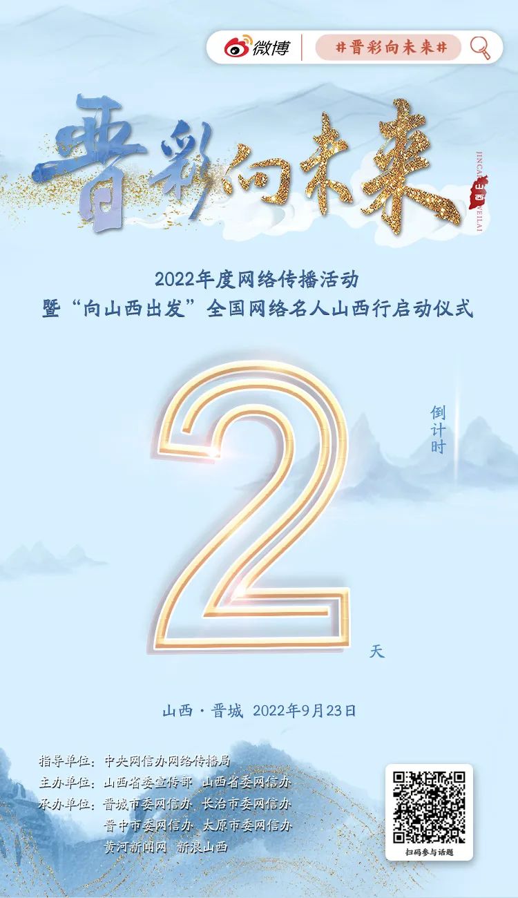 “晉彩向未來”年度網絡傳播活動,是“非凡十年?奮‘晉’未來”系列網絡主題宣傳活動之一。活動共分為短視頻征集活動、全國網絡名人山西行、優(yōu)秀作品展播三階段推進,目前短視頻征集已在線上預熱開啟?!皶x彩向未來”2022年度網絡傳播活動暨“向山西出發(fā)”全國網絡名人山西行活動將于9月23日正式啟動。