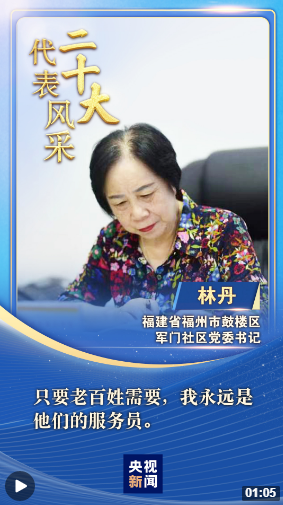 “二十大代表風(fēng)采”一起來認(rèn)識福建省福州市鼓樓區(qū)軍門社區(qū)黨委書記林丹。