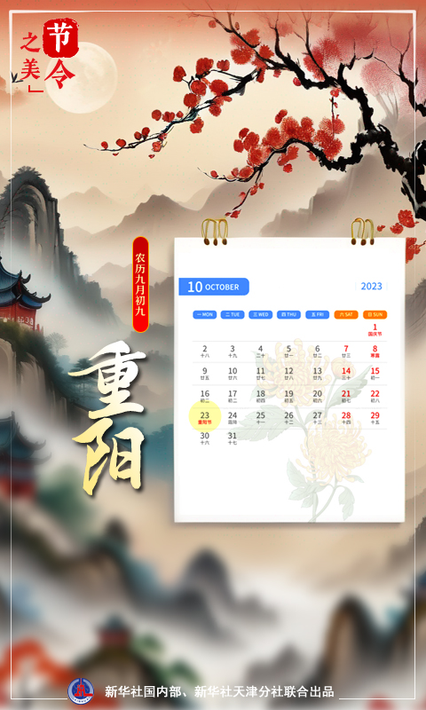 新華社天津10月22日電(記者周潤(rùn)健)“九日黃花酒,登高會(huì)昔聞?!?0月23日,農(nóng)歷九月初九,重陽(yáng)節(jié)。歲歲重陽(yáng),今又重陽(yáng)。農(nóng)歷九月初九緣何是重陽(yáng)?其中蘊(yùn)含著怎樣的“數(shù)字密碼”?