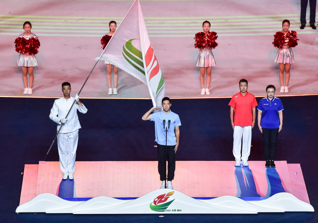 富有地域特色的暖場表演過后,在一萬多名現(xiàn)場觀眾聲震云霄的倒計時中,開幕儀式正式開始。國旗和會旗入場儀式后,各代表隊運(yùn)動員、教練員在引導(dǎo)員和執(zhí)旗手的引導(dǎo)下,闊步入場。大同和朔州作為東道主,壓軸亮相,得到了觀眾的熱烈歡呼。之后,升國旗儀式和升會旗儀式莊嚴(yán)進(jìn)行,山西省第十六屆運(yùn)動會宣布開幕。