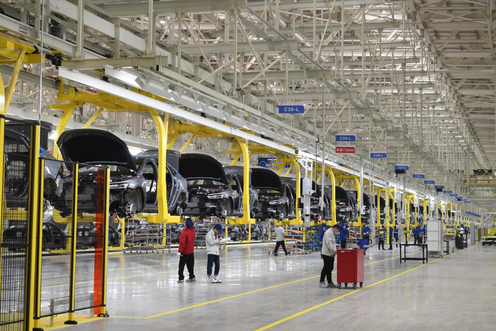 在合肥經(jīng)濟技術開發(fā)區(qū)的一家新能源汽車生產(chǎn)企業(yè),工人在整車生產(chǎn)線上作業(yè)。新華社發(fā)(解琛攝)