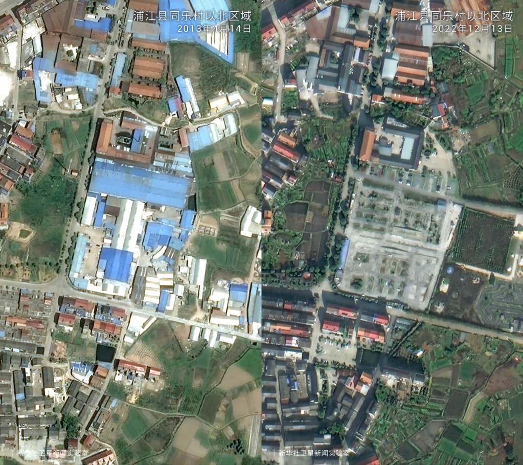 一組組衛(wèi)星對(duì)比圖見(jiàn)證了歲月流轉(zhuǎn)中的鄉(xiāng)村巨變。放眼浙江廣闊大地,這場(chǎng)跨越20年的美麗接力正煥發(fā)新的生機(jī)。