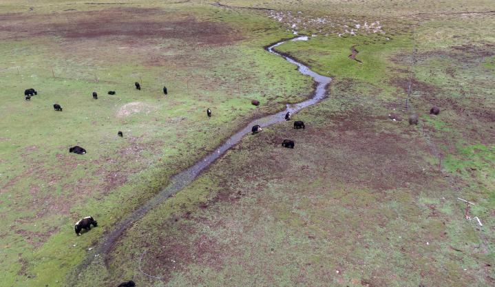 在平均海拔超4500米的長江源區(qū),牦牛、藏羊是當(dāng)?shù)啬撩袷来蕾嚨纳媮碓?。一些區(qū)域過去牛羊超載,生態(tài)惡化。