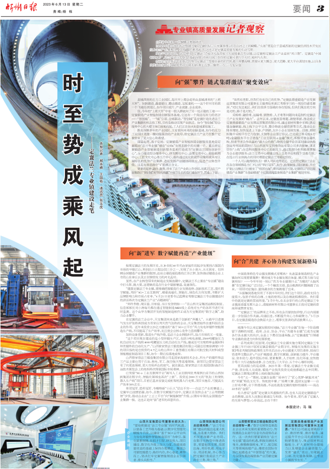 梳理今年以來定襄發(fā)展的時間軸,“法蘭專業(yè)鎮(zhèn)”在每一個階段都留下清晰的刻度。政府、企業(yè)、協(xié)會、平臺,“共建專業(yè)鎮(zhèn)”已成為定襄各行各業(yè)最大的共識,全縣上下都在加速奔跑,以“定襄速度”引領著專業(yè)鎮(zhèn)的前進方向和發(fā)展厚度。