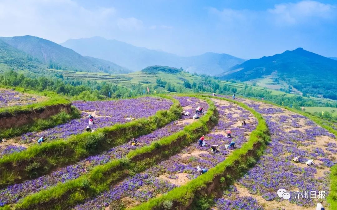 ▲寧武縣圪廖鄉(xiāng)黃嶺村村民采摘茶葉