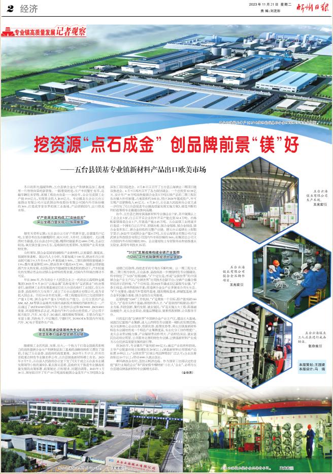 乘風(fēng)破浪會有時,直掛云帆濟滄海。作為國家工信部認定的首批“鎂行業(yè)規(guī)范企業(yè)”和“國家級專精特新‘小巨人’企業(yè)”,必將為五臺縣建設(shè)鎂基新材料專業(yè)鎮(zhèn)增光添彩。 (金俊賢)