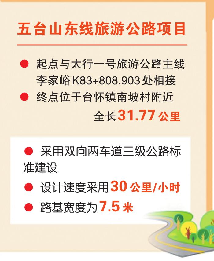 五臺山東線旅游公路起點(diǎn)與太行一號旅游公路主線李家峪K83+808.903處相接,終點(diǎn)位于臺懷鎮(zhèn)南坡村附近,全長31.77公里,采用雙向兩車道三級公路標(biāo)準(zhǔn)建設(shè),設(shè)計(jì)速度采用30公里/小時,路基寬度為7.5米。項(xiàng)目實(shí)施圍繞“扶貧、旅游、生態(tài)、人文、研學(xué)”等核心宗旨,著力提升五臺山風(fēng)景名勝區(qū)旅游公路的通行能力與服務(wù)水平,強(qiáng)化“交通+旅游”與“經(jīng)濟(jì)增長”的導(dǎo)向作用。