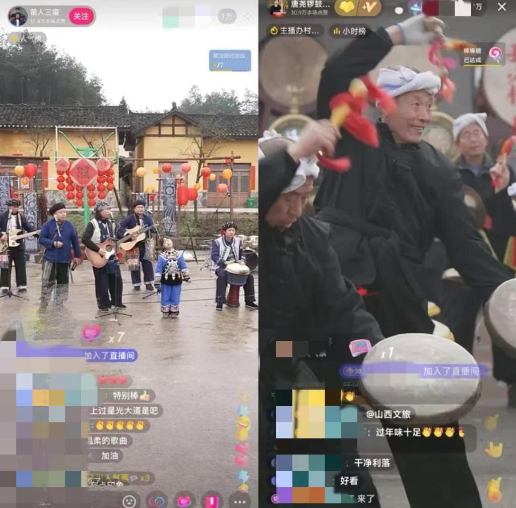 湖南省鳳凰縣臘爾山鎮(zhèn)苗寨中,4個(gè)“90后”苗族小伙組成樂隊(duì)自辦“村晚”,規(guī)模不大,唱火家鄉(xiāng);山西臨汾的村民們用簸箕、黃豆當(dāng)樂器,配合嗩吶和非遺晉南威風(fēng)鑼鼓,直播連線上千公里外的苗鄉(xiāng),南北大聯(lián)歡釋放獨(dú)特的精彩,吸引在線觀眾近800萬(wàn)人……