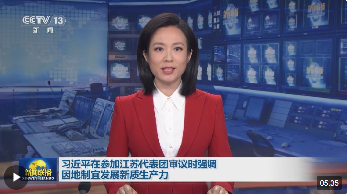 今年這次到江蘇團(tuán),總書(shū)記重點(diǎn)談的是因地制宜發(fā)展新質(zhì)生產(chǎn)力。發(fā)展新質(zhì)生產(chǎn)力,為何強(qiáng)調(diào)“因地制宜”?在江蘇團(tuán),總書(shū)記還傳遞了哪些重要信息?《時(shí)政新聞眼》兩會(huì)特刊為你解讀。