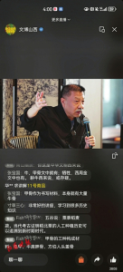 從山西古代壁畫隱藏的密碼、傳統(tǒng)壁畫艷麗制作工藝的挖掘研究,現(xiàn)場觀眾聽得津津有味、頻頻點頭,直播間網(wǎng)友更是踴躍留言、頻繁互動,網(wǎng)友@寸草三心留言:“非常好的講座,學(xué)習(xí)到很多歷史知識”;還有網(wǎng)友留言探討山西古代壁畫的重要價值。直播收尾前,如何更好地保護(hù)山西低等級壁畫?介子平老師表示,文物不分“高低”,每個人審美不一樣,無論是低等級別還是其他級別,山西古代壁畫都值得大家去保護(hù)、去珍藏、去解讀;史宏蕾教授也呼吁,大家一定要關(guān)注那些散落在鄉(xiāng)間田野里的低等級壁畫,低等級壁畫中也有極其重要的價值。