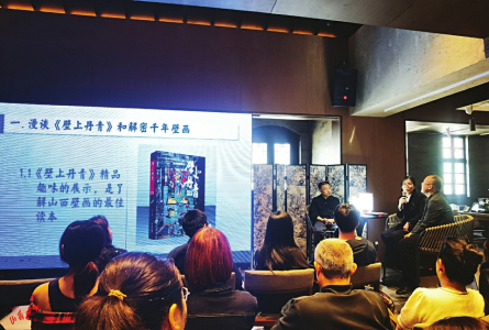 這場講座備受文博迷們關(guān)注,預(yù)告一經(jīng)發(fā)布,便達(dá)到報名滿額的狀態(tài)。當(dāng)日,現(xiàn)場更是座無虛席,不乏默默站著聆聽的觀眾。專家們帶領(lǐng)大家穿越千年時光,從漢魏墓室壁畫開始,將壁畫的線條、配色、技術(shù)、布局等一一揭曉。史宏蕾教授從平陸縣棗園漢墓壁畫、大同沙嶺墓、太原婁睿墓講起,壁畫上的鑿井青龍、白虎和玄武形象、還原農(nóng)業(yè)生產(chǎn)景象的牛耕壁畫、一對墓主人夫婦的畫作以及宰羊圖……這些畫作線條優(yōu)美、故事豐富、將當(dāng)時的生活狀態(tài)表現(xiàn)得活靈活現(xiàn)。史宏蕾教授表示,古代畫匠可以被稱為“巨匠”“藝術(shù)家”,他們的審美、原創(chuàng)力都堪稱為領(lǐng)先,很多時候她更愿意稱這些畫匠為“丹青專職畫家”。