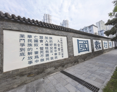 山西國民師范舊址革命活動紀念館珍藏著兩枚山西犧牲救國同盟會的會徽。會徽為銅質(zhì)、圓形,圖案以民國時期中國地圖為背景,正中書有“犧牲救國”四個大字,是國家一級文物。