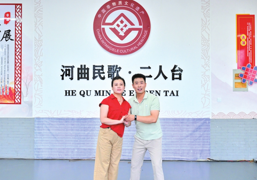 走進河曲縣白樸公園,一段清亮婉轉(zhuǎn)的唱腔便隨風入耳——河曲縣民歌二人臺藝術(shù)團演員鄔光正和同事們?nèi)橥度?,打磨大型非遺音樂劇《大河長歌》。他額角滲著細密的汗珠,當唱到“好兒女今日唱長歌,勝過了前輩了不得”時,突然停了下來,對搭檔說:“再來一遍,剛才那口氣沒頂滿。”這份對細節(jié)的較真,藏著他對二人臺藝術(shù)最樸素也最深厚的敬畏。