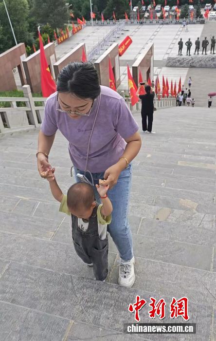 蹣跚學(xué)步的孩子正在攀爬象征紀(jì)念115師的115級臺階。 記者 郎朗 攝