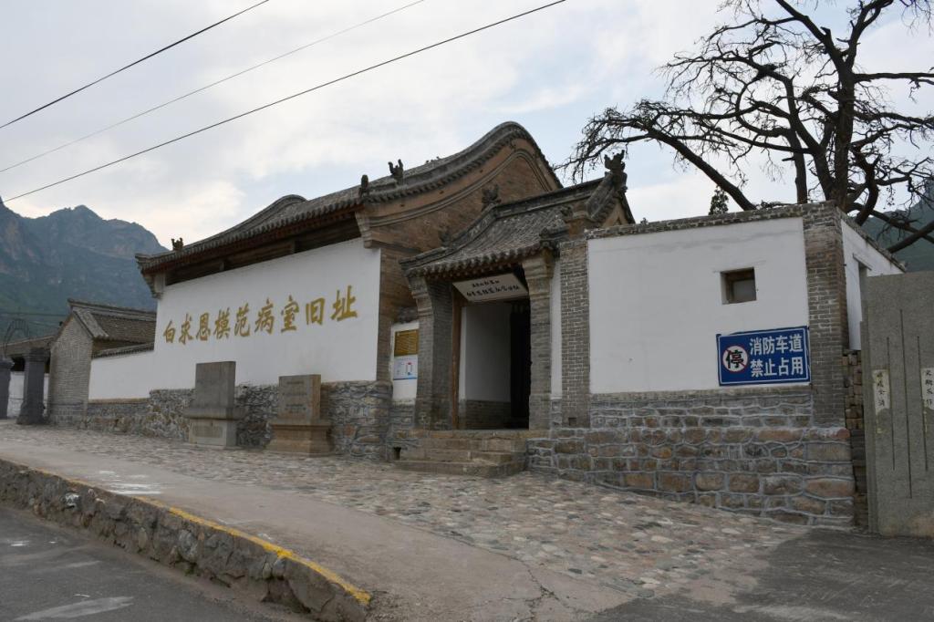 1938年9月15日,白求恩模范病室正式建成,展開了一系列專業(yè)性醫(yī)療救治工作,培訓出一批醫(yī)護人員。但由于日寇慘無人道的掃蕩,10月上旬,病室在戰(zhàn)火中燒毀,僅存大門門樓和院內一棵800多年的古松。