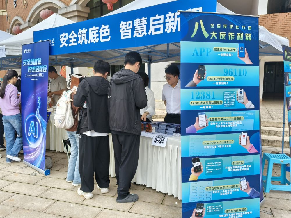 校園的露天廣場上還安排有網(wǎng)絡(luò)安全知識趣味問答活動,吸引學(xué)生參與,讓他們在輕松愉快的氛圍中鞏固了反詐知識。還有工作人員向路過的學(xué)生發(fā)放反詐宣傳手冊。